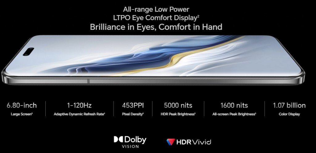 The Magic6 Pro’s display is a 6.8-inch LTPO OLED panel with a resolution of 2800×1280 pixels, delivering sharp visuals at 453ppi. The display is customizable, allowing users to adjust the resolution between Low, Standard, and High settings. This flexibility, along with the adjustable refresh rate (ranging from 1Hz to 120Hz).